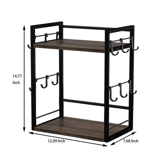 Dorhors 2 Tier Coffee Bar Accessories and Organizer,Multi-functional Mug Holder with 12 Hooks,Wood Coffee Station Organizer,Kitchen Countertop Shelf