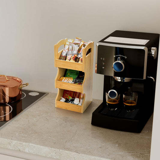 Foraineam Tea Bag Organizer Bamboo Coffee Condiment and Accessories Storage Holder, 3 Tier Teabag Shelf Coffee Pod Organizer Caddy Storage Box, Vertical Coffee Tea Packet Rack for Home, Office, Café