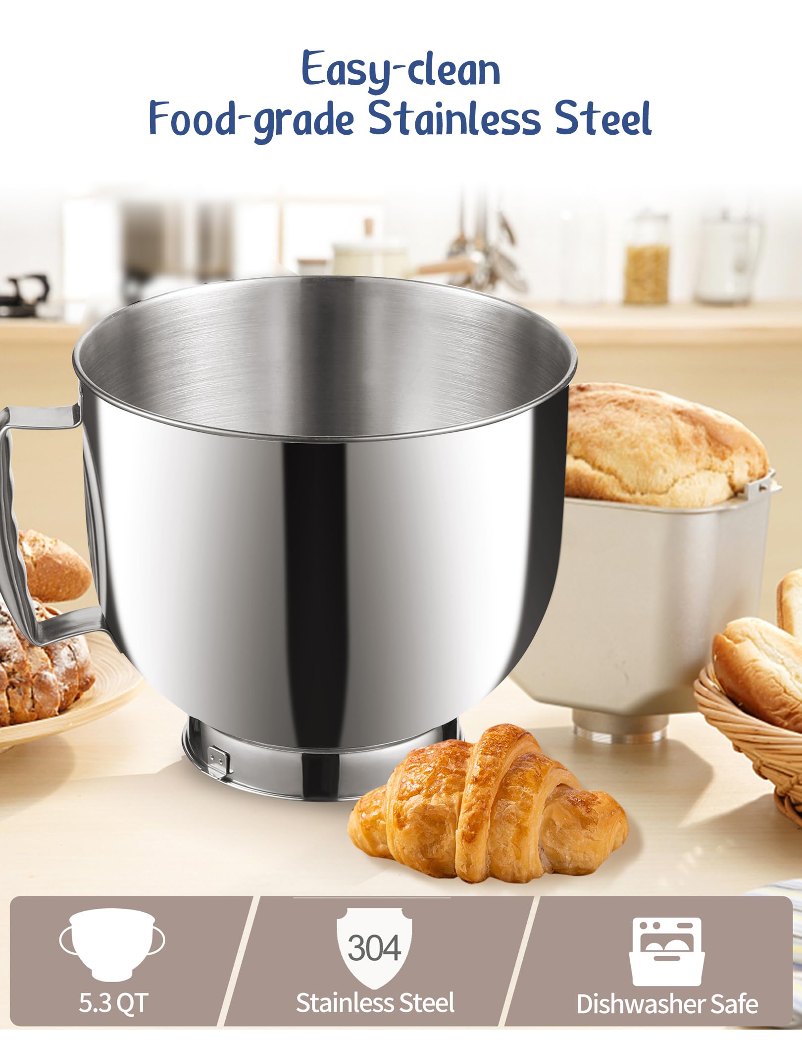 - MULTIPLE ATTACHMENT SET:Crafted with food-grade stainless steel bowls and premium accessories, resistant to corrosion and high temperatures, ensuring your ingredients remain pure and uncontaminated. Its sturdy construction guarantees long-lasting performance.