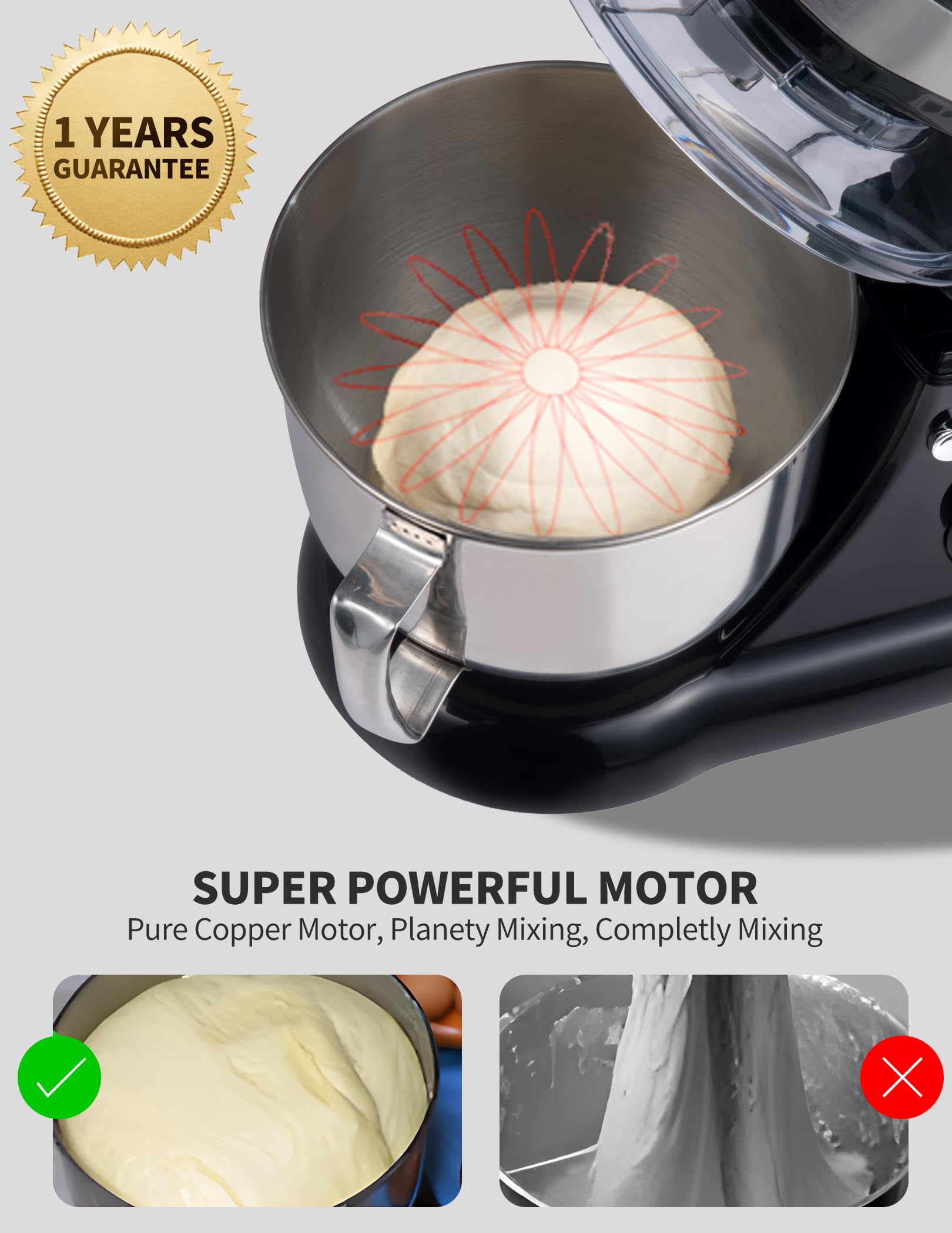 - EASY-CLEAN & HASSLE-FREE:The stand mixer designed for effortless cleaning, with detachable bowls and attachments that can be quickly removed for washing. The tilt-head design mixer allows for easy installation or uninstallation of accessories.