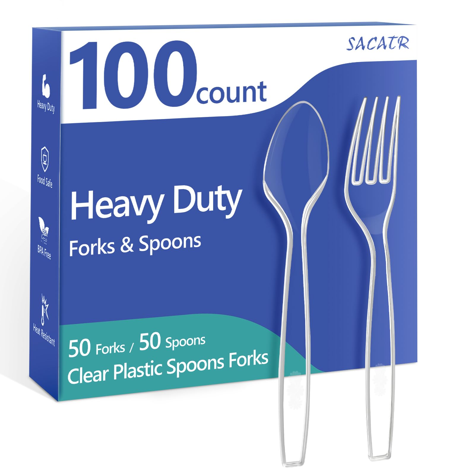 100 Count Plastic Silverware Heavy Duty -50 Forks, 50 Spoons, BPA-Free, Heat Resistant, Disposable Plastic Utensils Set, Plastic Cutlery Set, Plasticware Suitable for Party Everyday Use