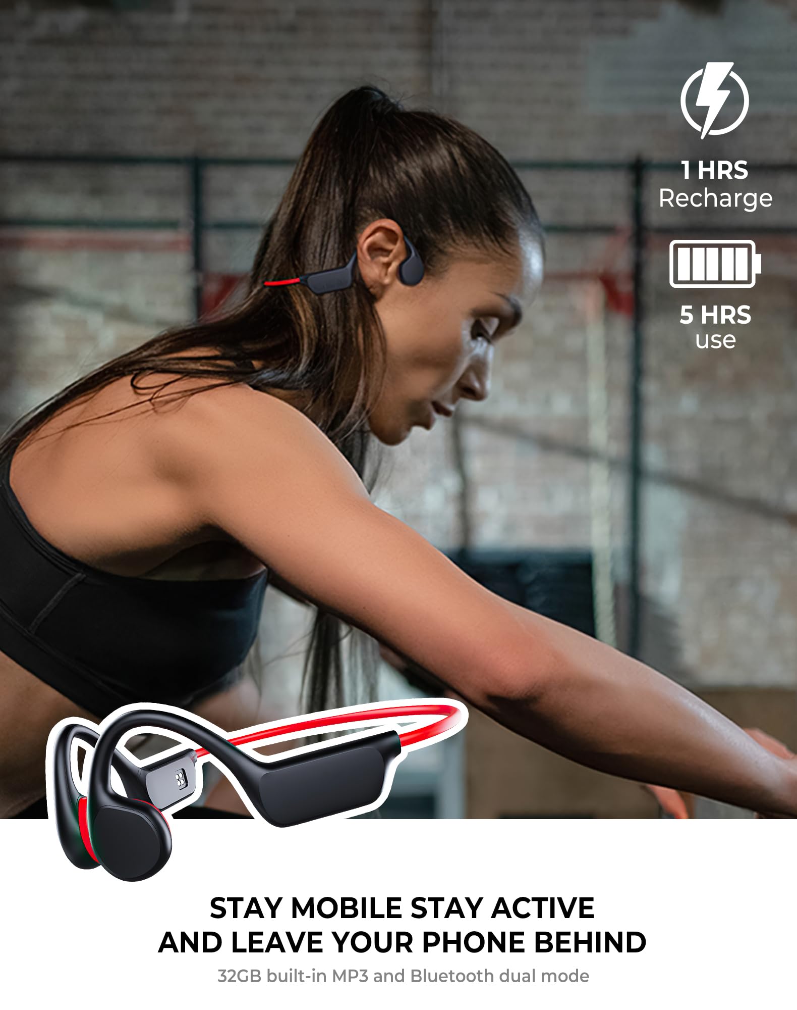 - 【Bluetooth/MP3 Double-Mode Bone Conduction Headphones】Atopskins bone conduction headphones waterproof have built-in high-quality Bluetooth chip and 32GB memory, with two usage modes of Bluetooth and MP3 player. Atopskins headphones for swimming will affect Bluetooth signal reception in deep water environment, so you can download music and switch to MP3 playback mode while swimming, and use swimming earbuds as an independent MP3 player. No need to connect to the device, no distance limit.