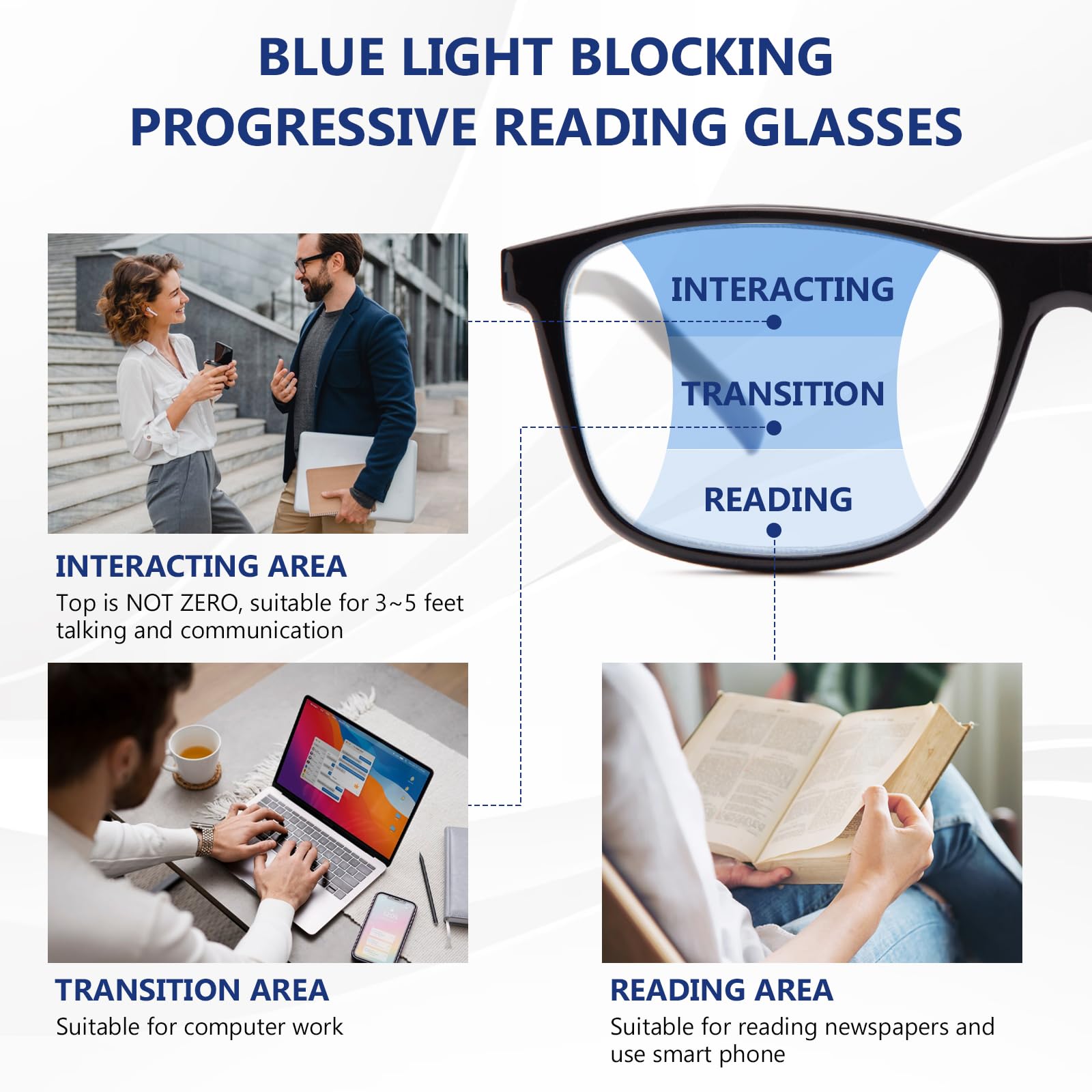 - 【Lightweight & Unbreakable】Progressive readers features a TR90 frame with excellent elasticity, hard to break. The temples are made of carbon fibre, stylish and textured. The whole transitional glasses are lightweight.