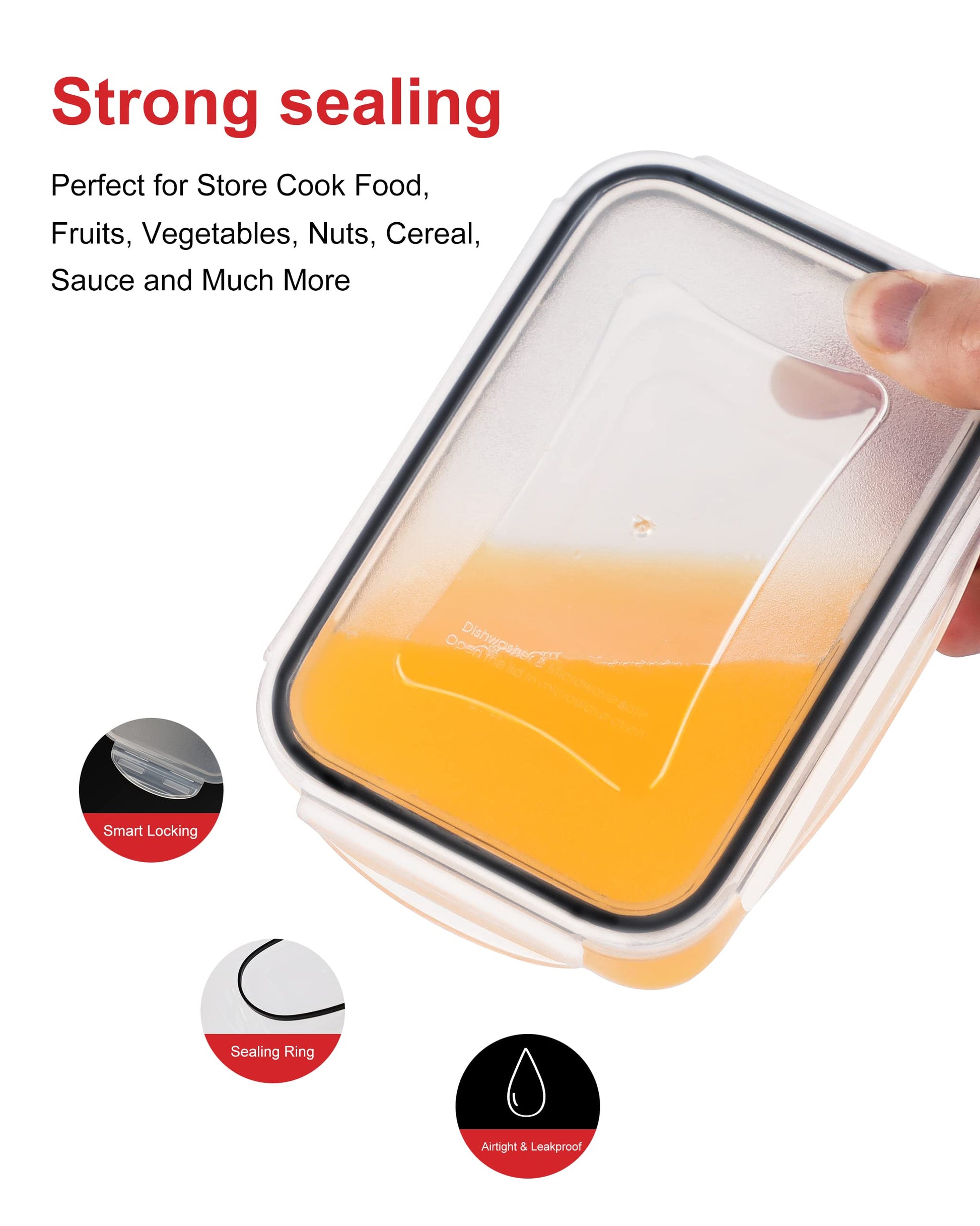 - ✅ Airtight, Leak Proof Lids – Each of our plastic containers comes with matching easy snap lock tight lids to help ensure freshness and prevent odors or messes from leaking out.
