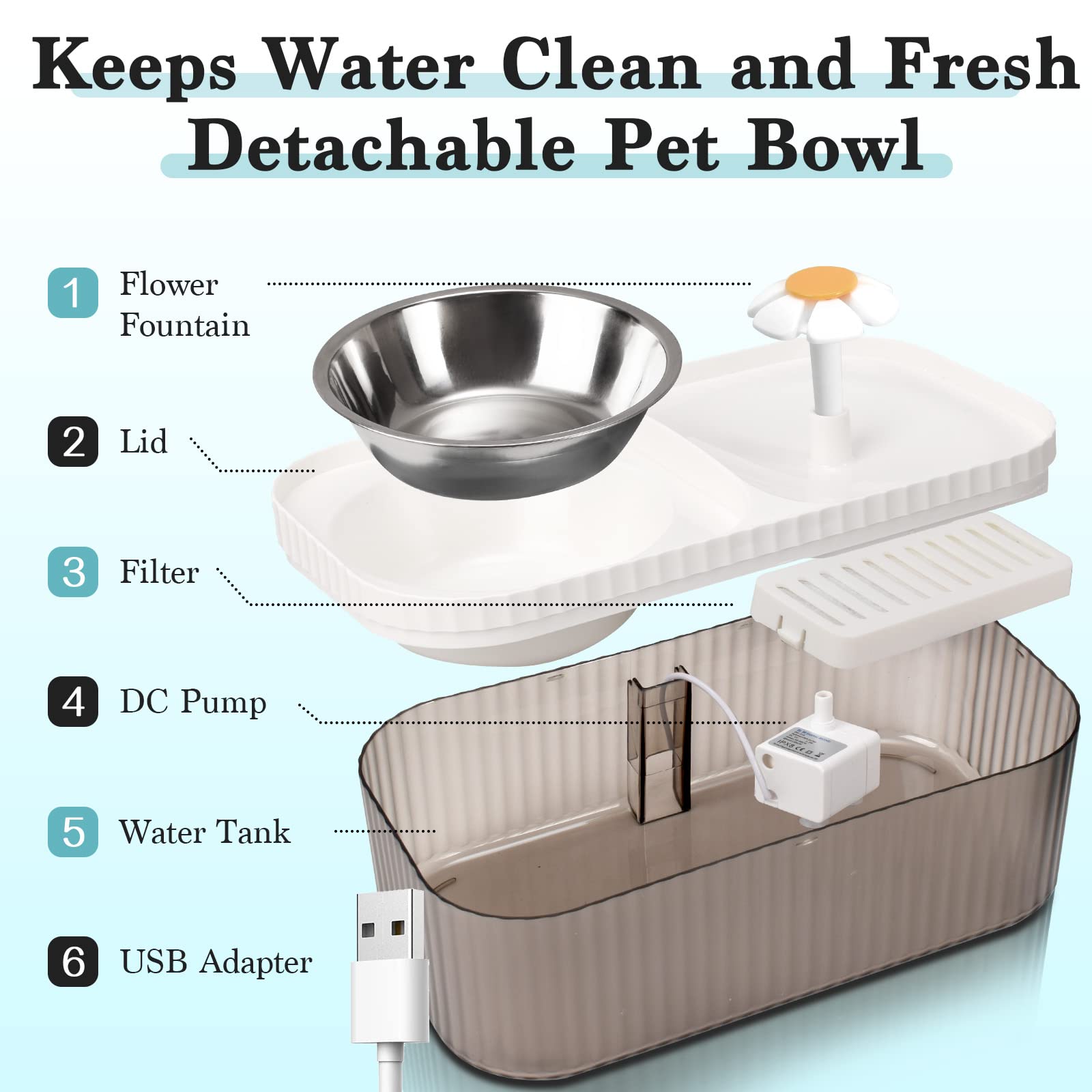 Fuente de agua 2 en 1 para gatos – Doble tazón elevado con inclinación de 15°