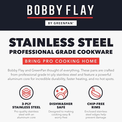 GreenPan x Bobby Flay Stainless Steel 12 Piece Cookware Pots and Pans Set, Professional Grade Tri Ply, PFAS-Free Ceramic Nonstick, Induction Suitable, Dishwasher & Oven Safe, Stay Cool Handles