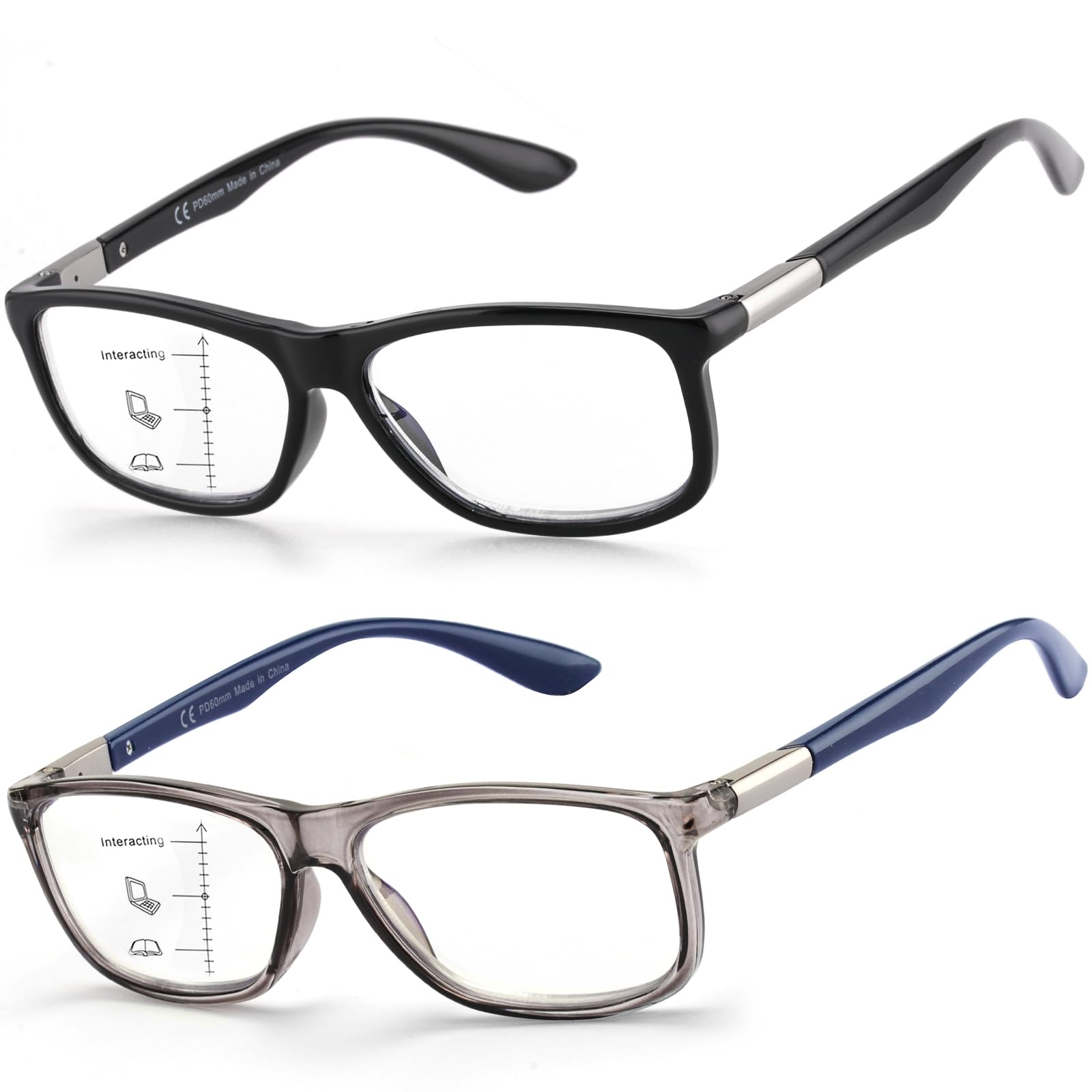 Missfive 2 Pack Classic Progressive Multifocus Reading Glasses for Men, Premium Lightweight TR90 Frame Eyeglasses, Unisex No-line Trifocal Readers for Near Range, Anti Blue Light/UV, 2.5X