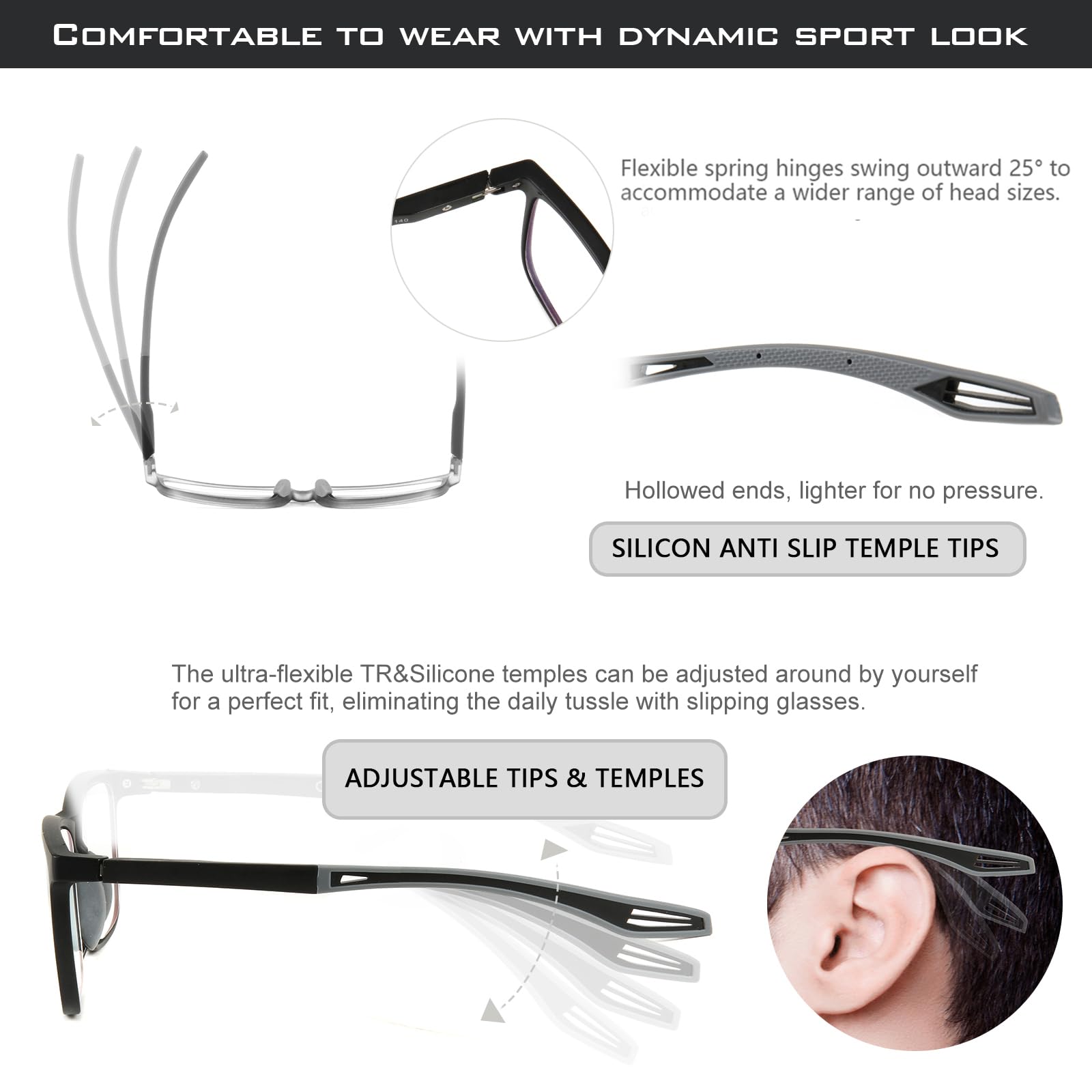 - SUPREME COMFORT GRIP: Our readers boast optical-grade hypoallergenic silicone nose pads and temple ends that lovingly hug your skin; The ultra-flexible silicone at the temples can be adjusted by yourself for a perfect fit, snug yet gentle, eliminating the daily tussle with slipping glasses