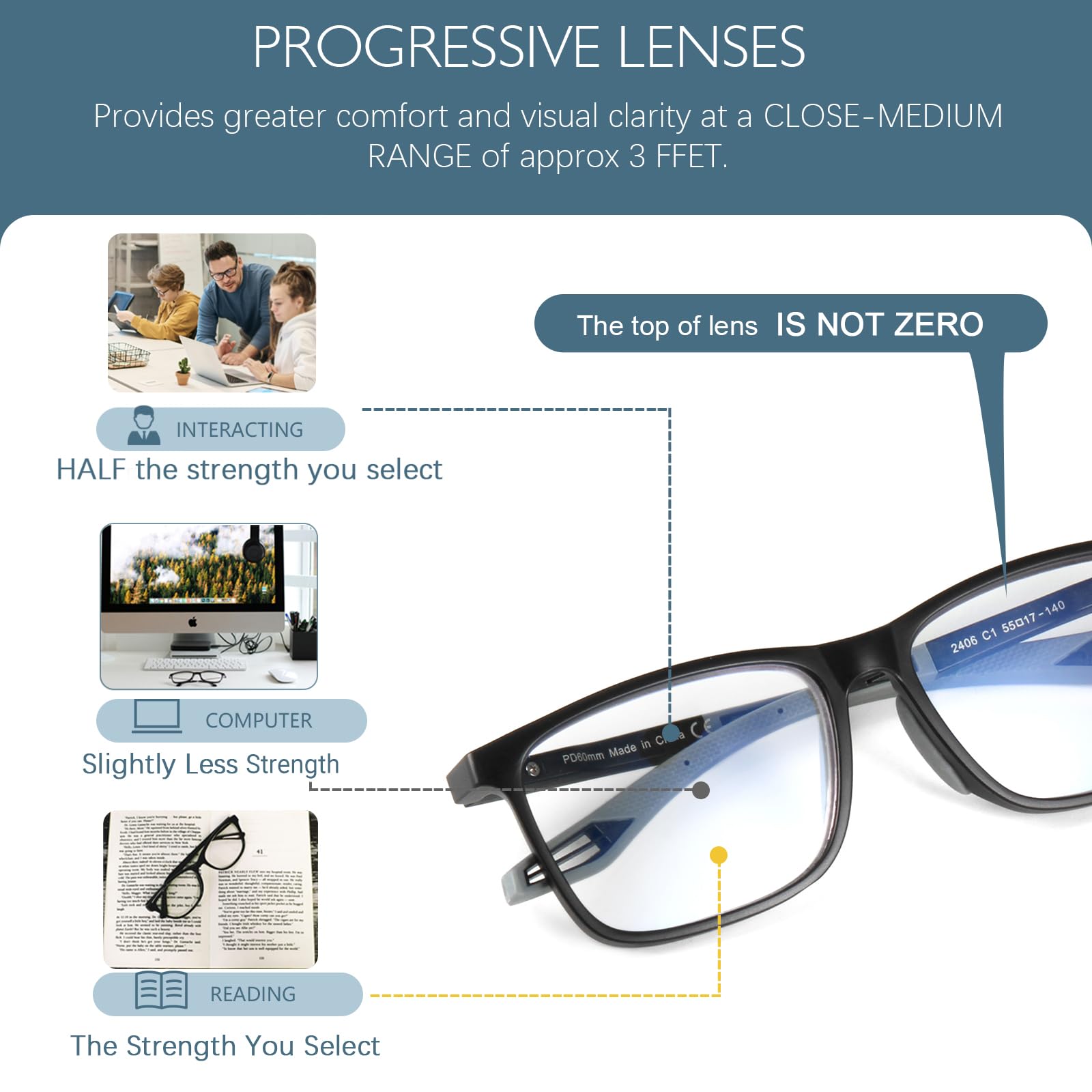 - DYNAMIC MULTIFOCAL GLASSES: These glasses are professionally designed to enhance your 3-FEET vision; Imagine comfortably reading your favorite novel, jotting down notes on your computer, and sharing with friends sitting across the desk, without switching your glasses; Experience richer details than regular reading glasses with our progressive multifocus glasses