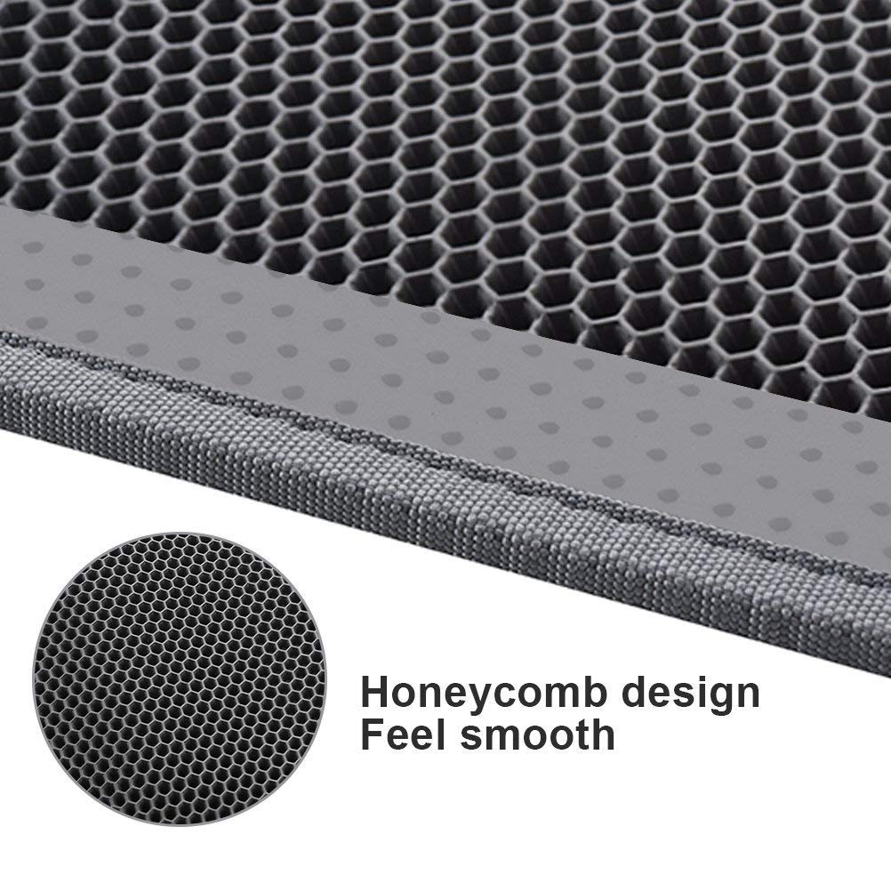 - Anti Tracking EZ Open Edge Litter Mat: Double-layer honeycomb design helps you gather the litter. You just pick up the mat and all the litter falls through and then dump it back in the litter box make it recycling. No more getting litter stuck to my feet on a daily basis! Large holes is large enough to catch and trap litter. Suitable for lots of type of litter, and kitty litter boxes,hooded,self cleaning litter box.
