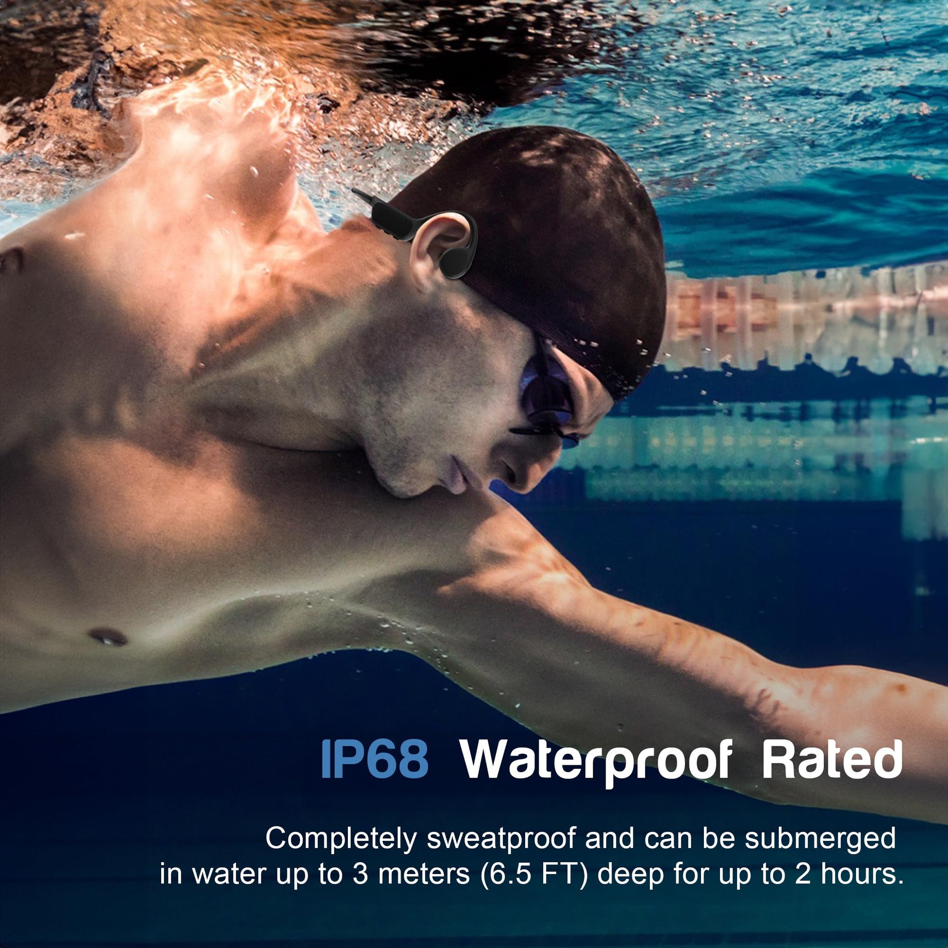 - IP68 Waterproof Rating: With an IP68 rating, these Swimming Headphones Underwater are waterproof up to 3 meters / 6.5 feets, making them perfect for swimming and other water activities. They deliver reliable performance and high-quality audio even when submerged, meeting the needs of aquatic sports enthusiasts.
