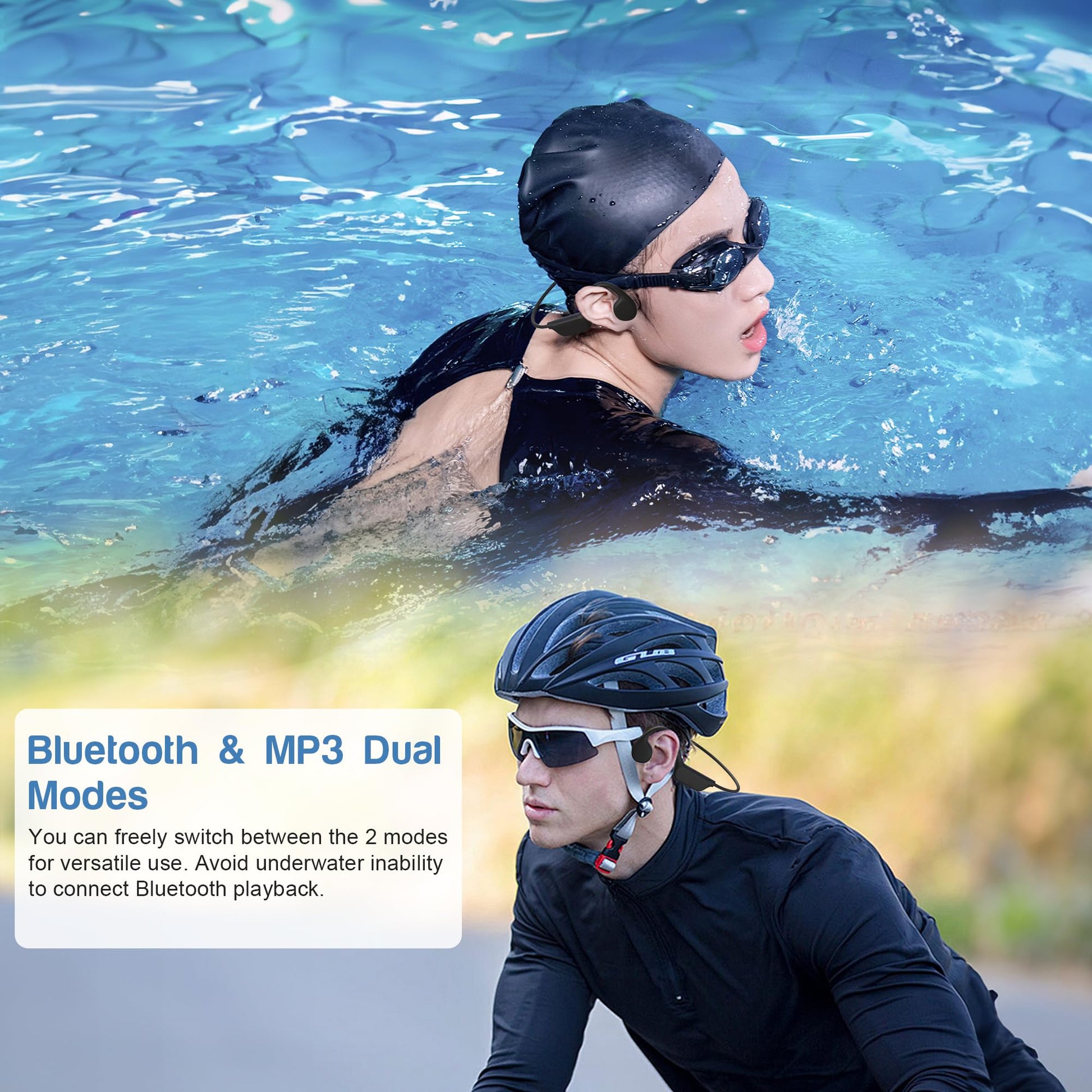 - Versatile Usage Scenarios: Swimming, Fitness, Cycling, Driving: Designed for versatility, these bone swimmiing conduction headphones are suitable for swimming, fitness, cycling, and driving. The open-ear design enhances situational awareness, making them practical for various activities while delivering high-quality sound.