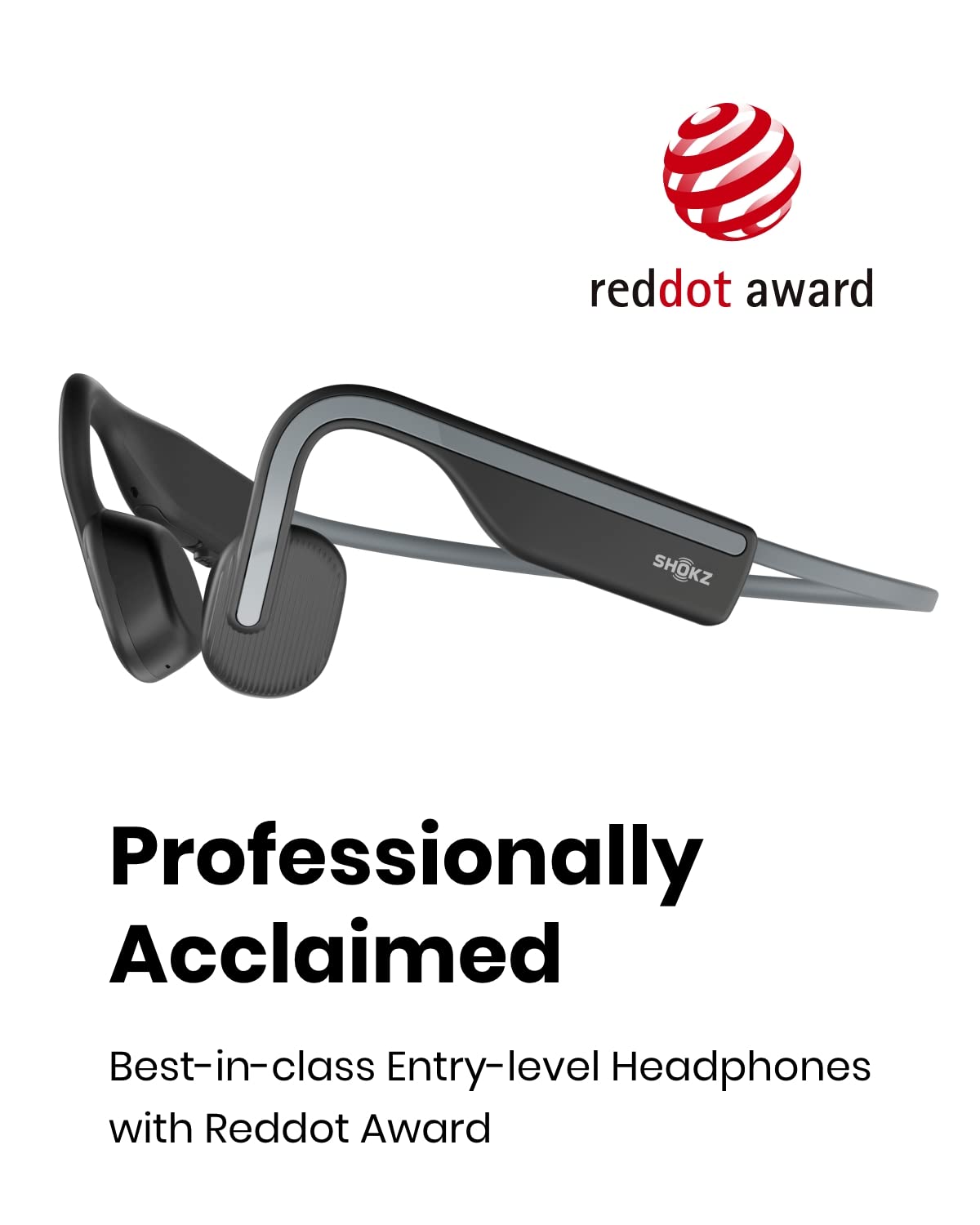 SHOKZ OpenMove - Open-Ear Bluetooth Sport Headphones, Bone Conduction Wireless Earphones, Sweatproof for Running and Workouts, with Sticker Pack, Grey