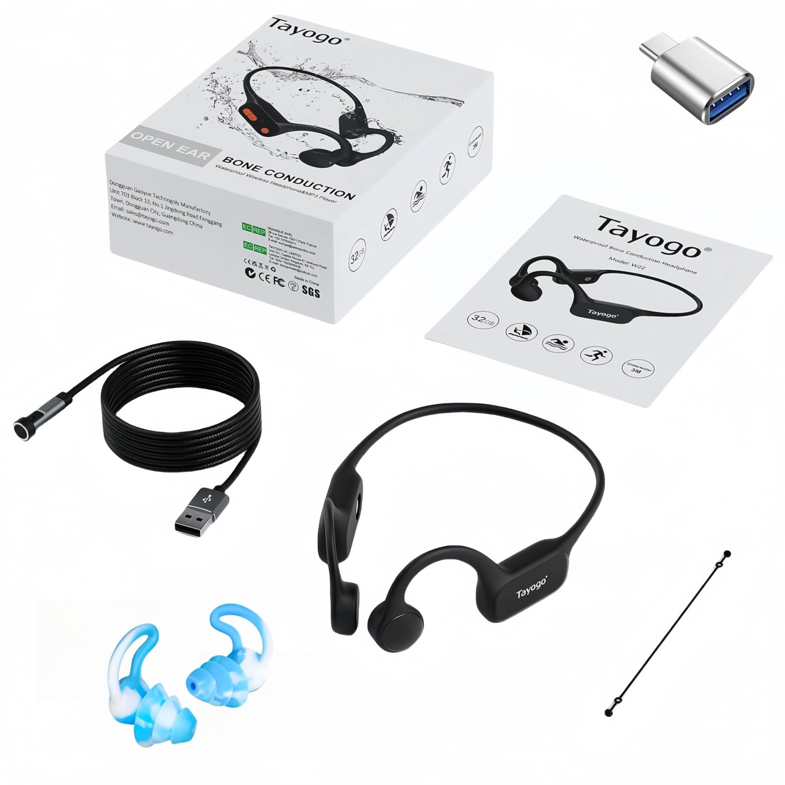 Tayogo Swimming Headphones, Bone Conduction Swimming Earphones, Waterproof Earbuds, Bluetooth 5.4, 32GB of MP3